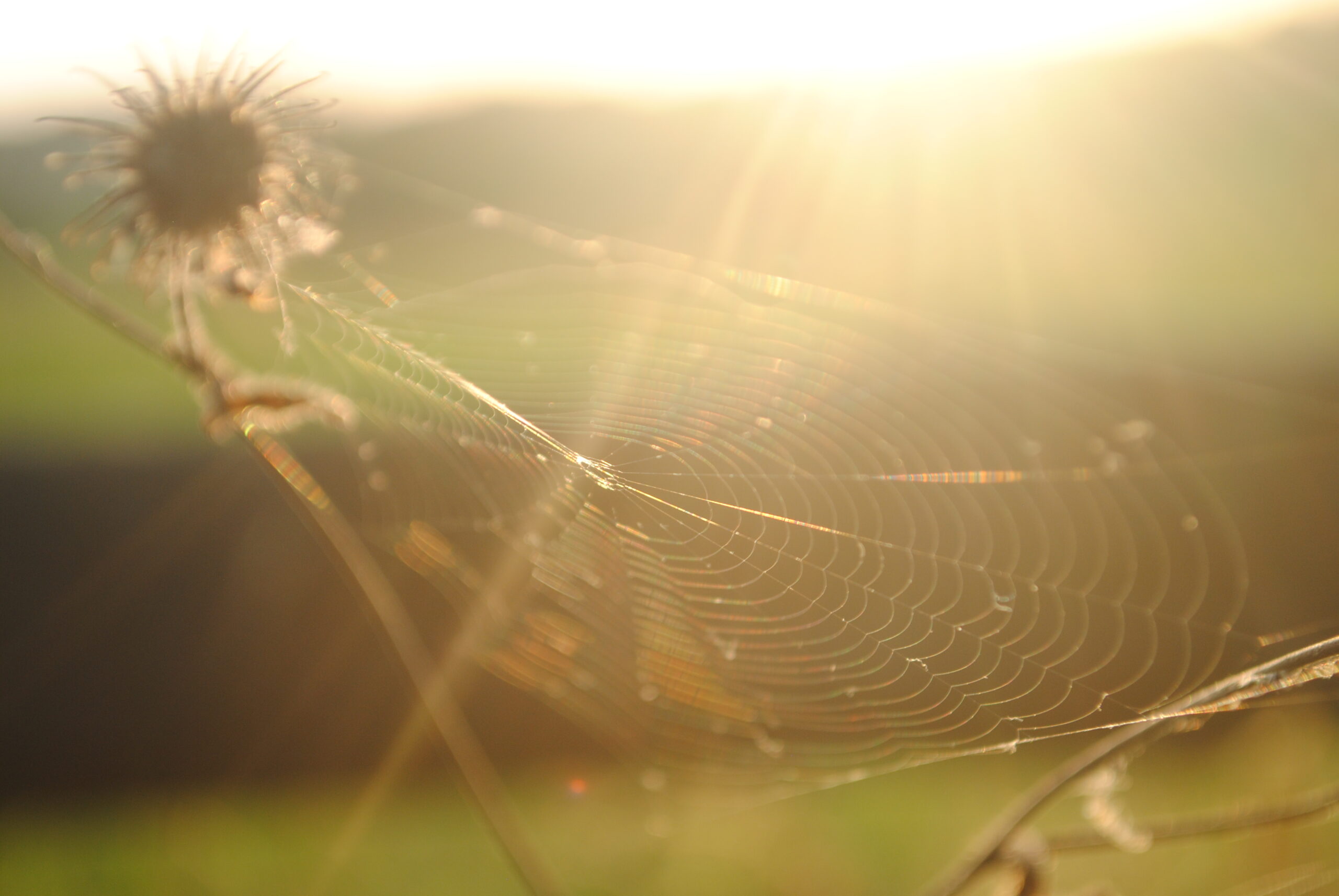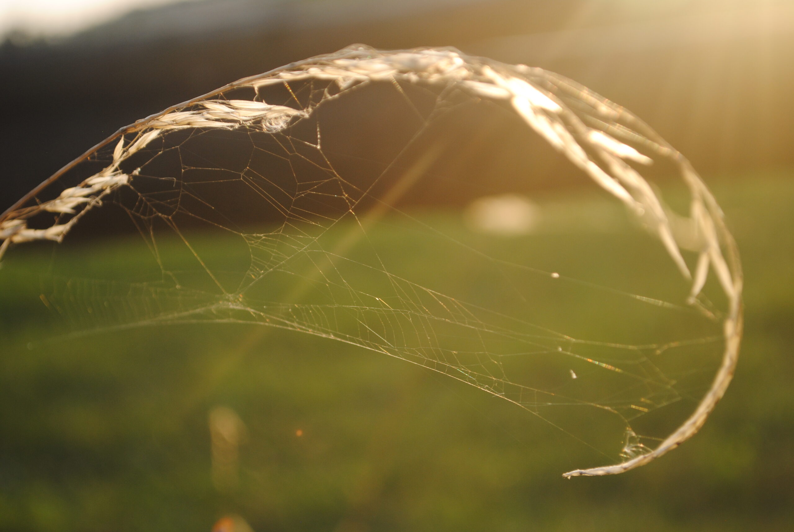 Die Fäden fangen das Abendgold ein.