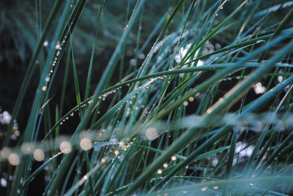 Ich setze mich an den Rand, nehme die stille Atmosphäre in mich auf – und bewundere die Tropfen, die in den Gräsern glitzern.