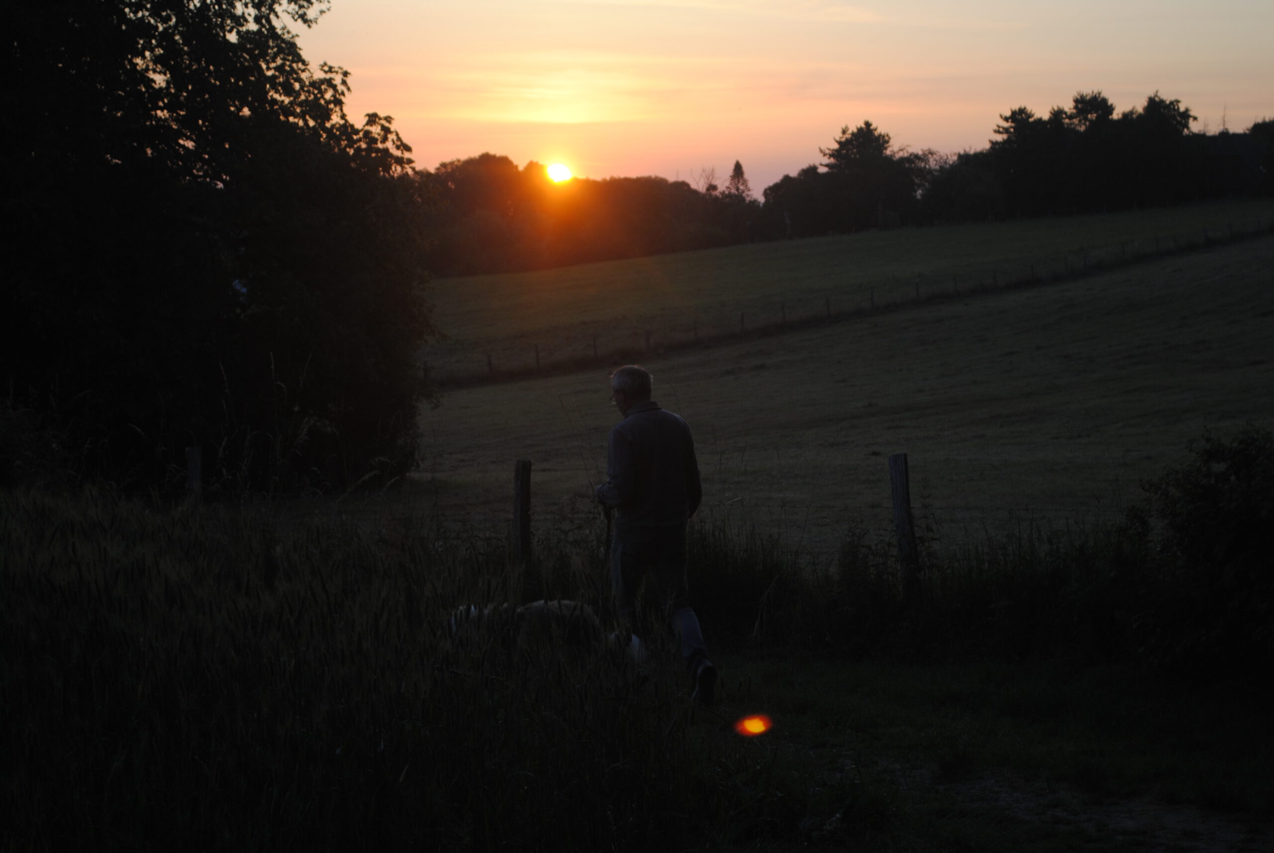 Mit mir und den Hunden vor Sonnenaufgang, sodass wir den Anbruch des Sommerbeginns gemeinsam erleben können.
