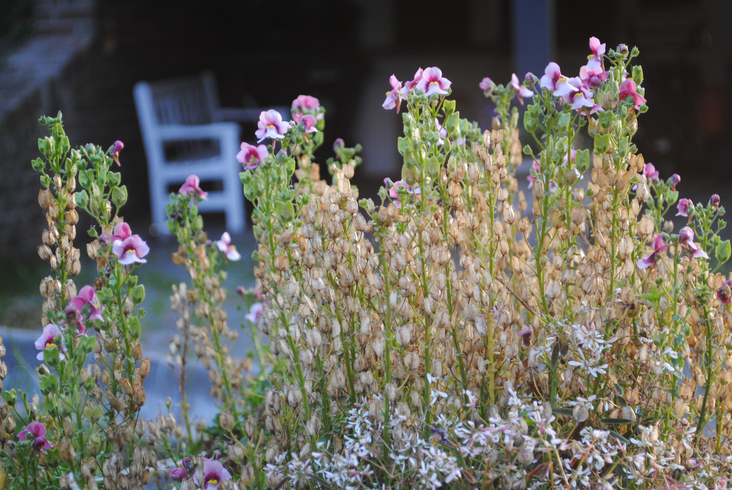Und die Blumen im Topf, die jetzt langsam verblühen, ihre trockenen Samenkapseln ausbilden…
