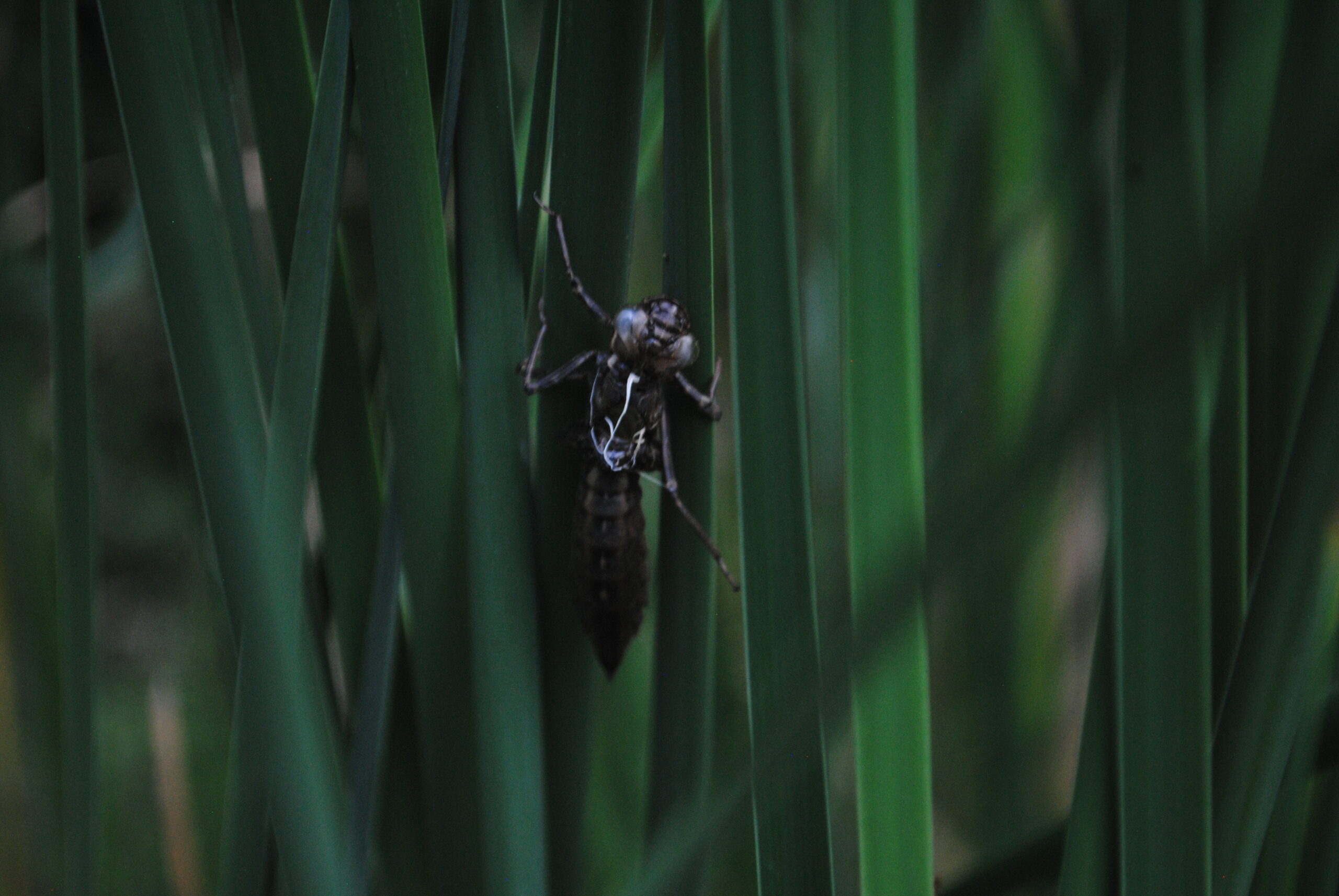 Da, eine einzige leere Hülle hängt im Schilfgras, ein zurückgebliebenes Relikt der gelungenen Metamorphose.
