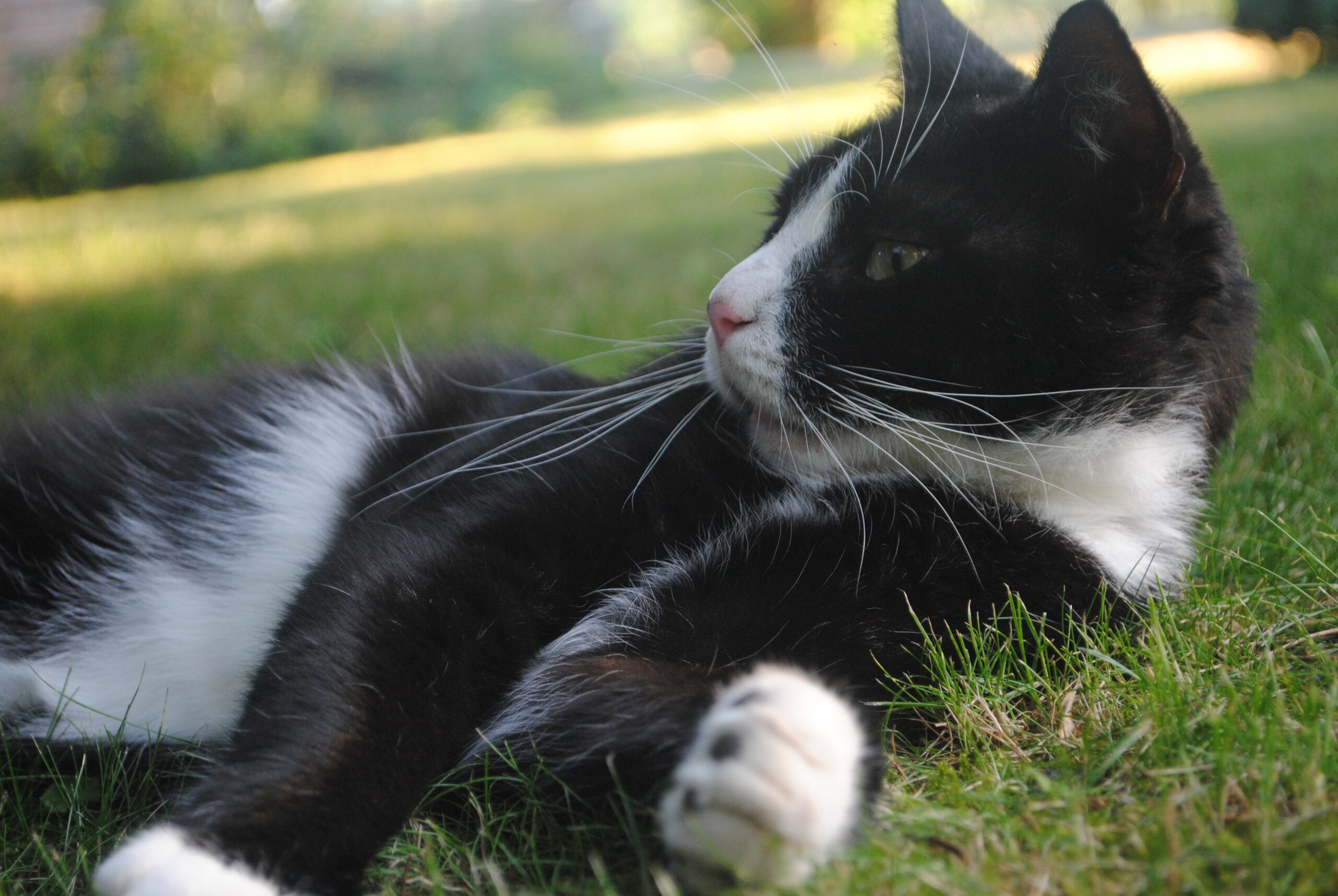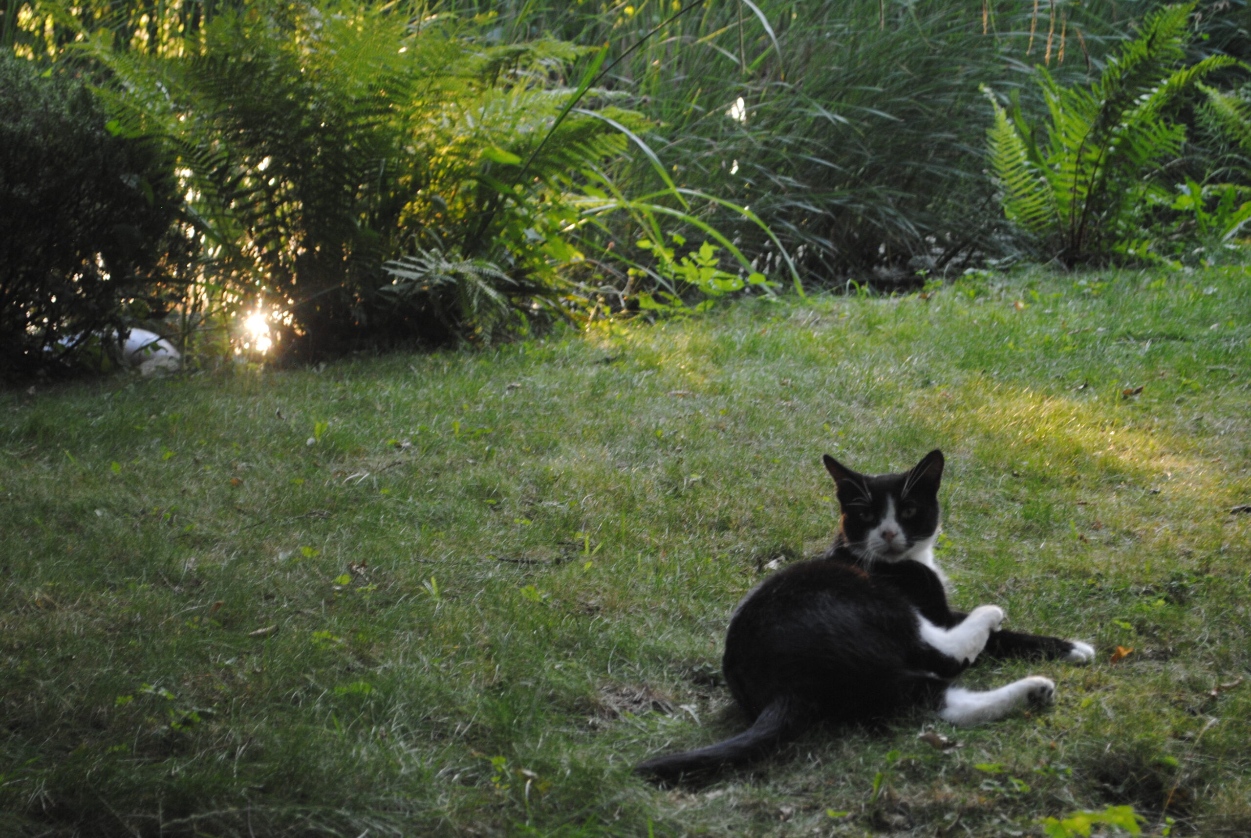 Er legt er sich lang auf das schattige Gras und blinzelt in den warmen Nachmittag.