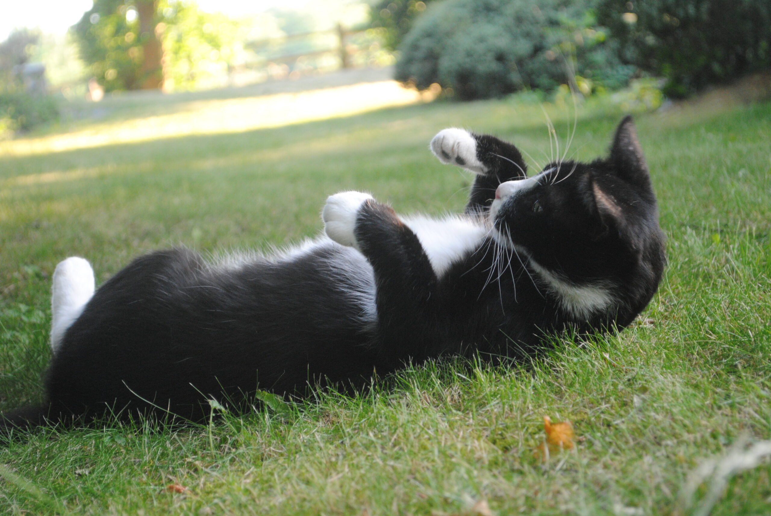 Er kugelt sich auf der Wiese, rollt sich ein, hüpft kurzerhand einen Ast hoch, wieder herunter.