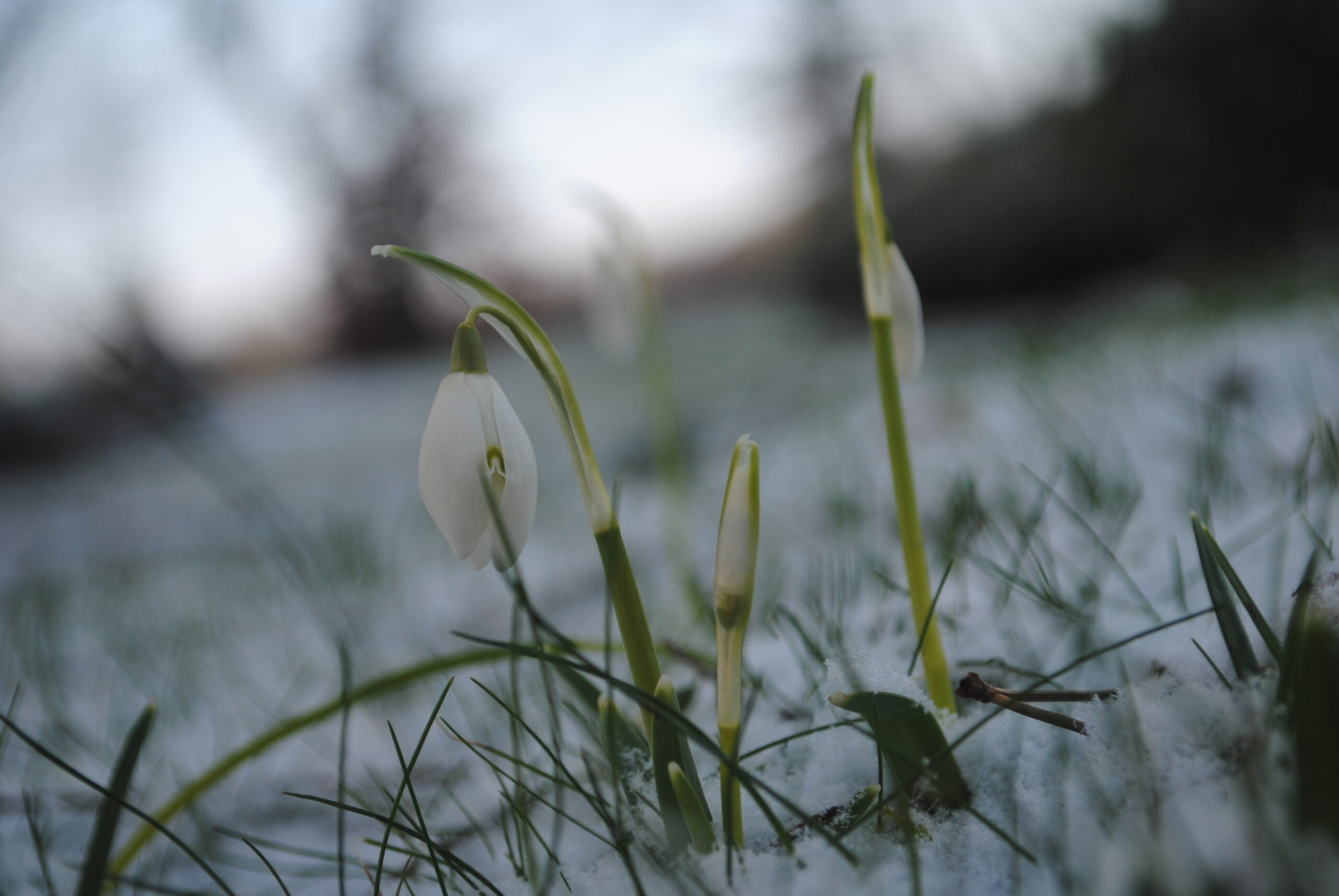 Ein Stückchen weiter strecken sich die kleinen Schneeglöckchen aus.