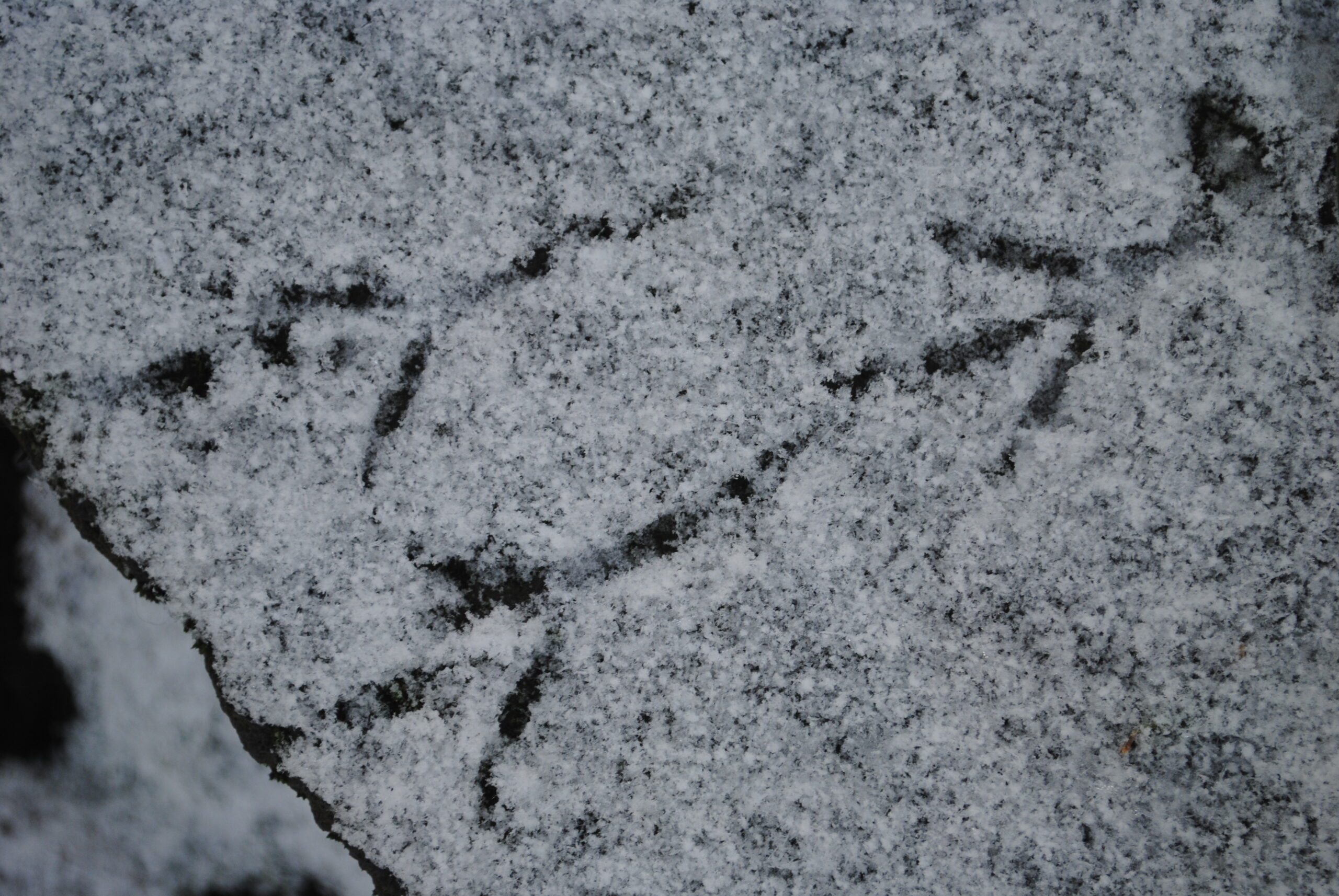 Und als ich auf dem Rückweg von der großen Scheune unserer Nachbarn bin, mit neuem Heu für die Schafe, betrachte ich den verschneiten Boden, und meine Fußabdrücke dort vom Hinweg, die mir entgegenkommen zu scheinen.