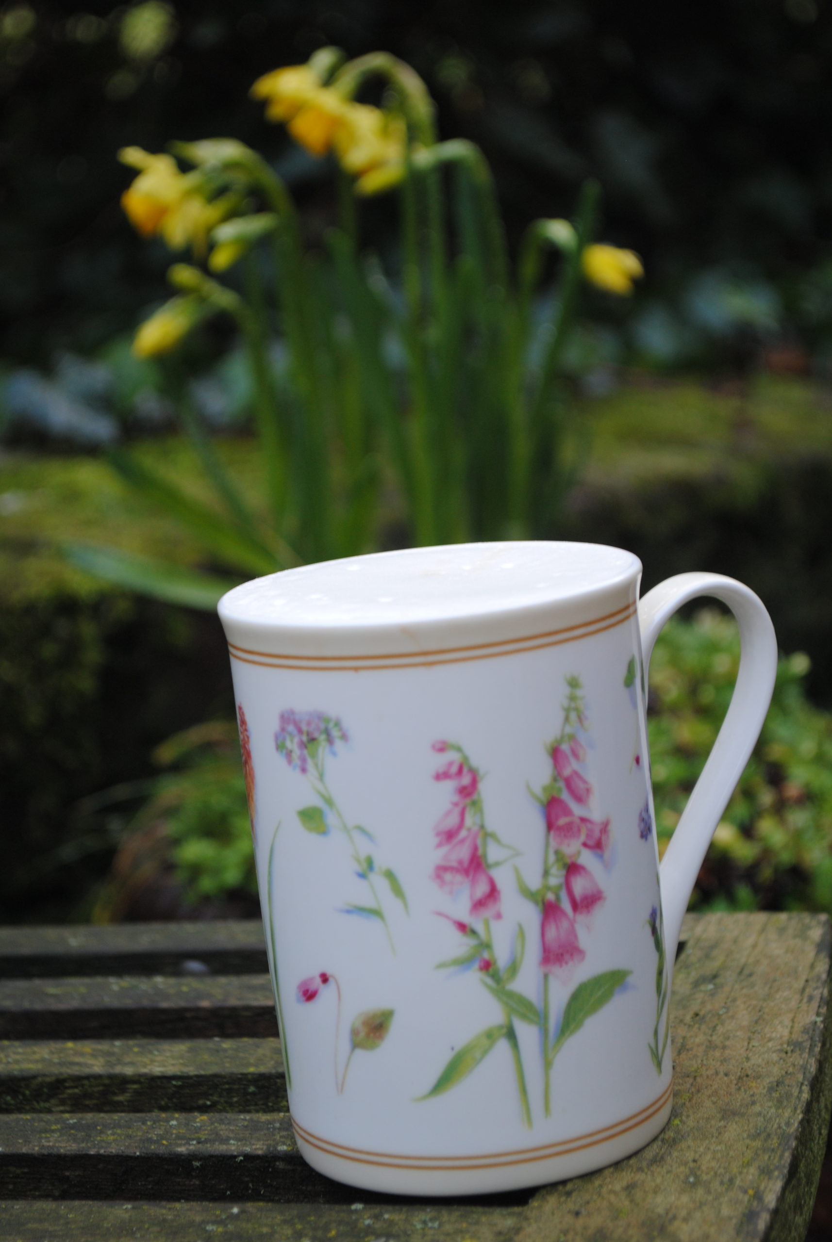 Es bleibt so wundervoll warm. Die Welt erscheint in einem sanft sonnigen Licht, und spürbar streckt sich jede Nase, jeder Halm dieser Wärme entgegen. Die Frühblüher scheinen im Zeitraffer zu wachsen, und die Schafweide, die so kahl da lag, zeigt sich ganz langsam mit grünem Flaum. Am Morgen sitze ich auf der kleinen Bank am Haus. Mein Mann hat mir einen perfekten Milchkaffee zubereitet, nachdem ich vom Hunde- Spaziergang zurück kam. Eingehüllt von Vogelgezwitscher genieße ich ihn Schluck für Schluck, während die wundervolle Sonne die Szenerie in warmes Licht taucht.