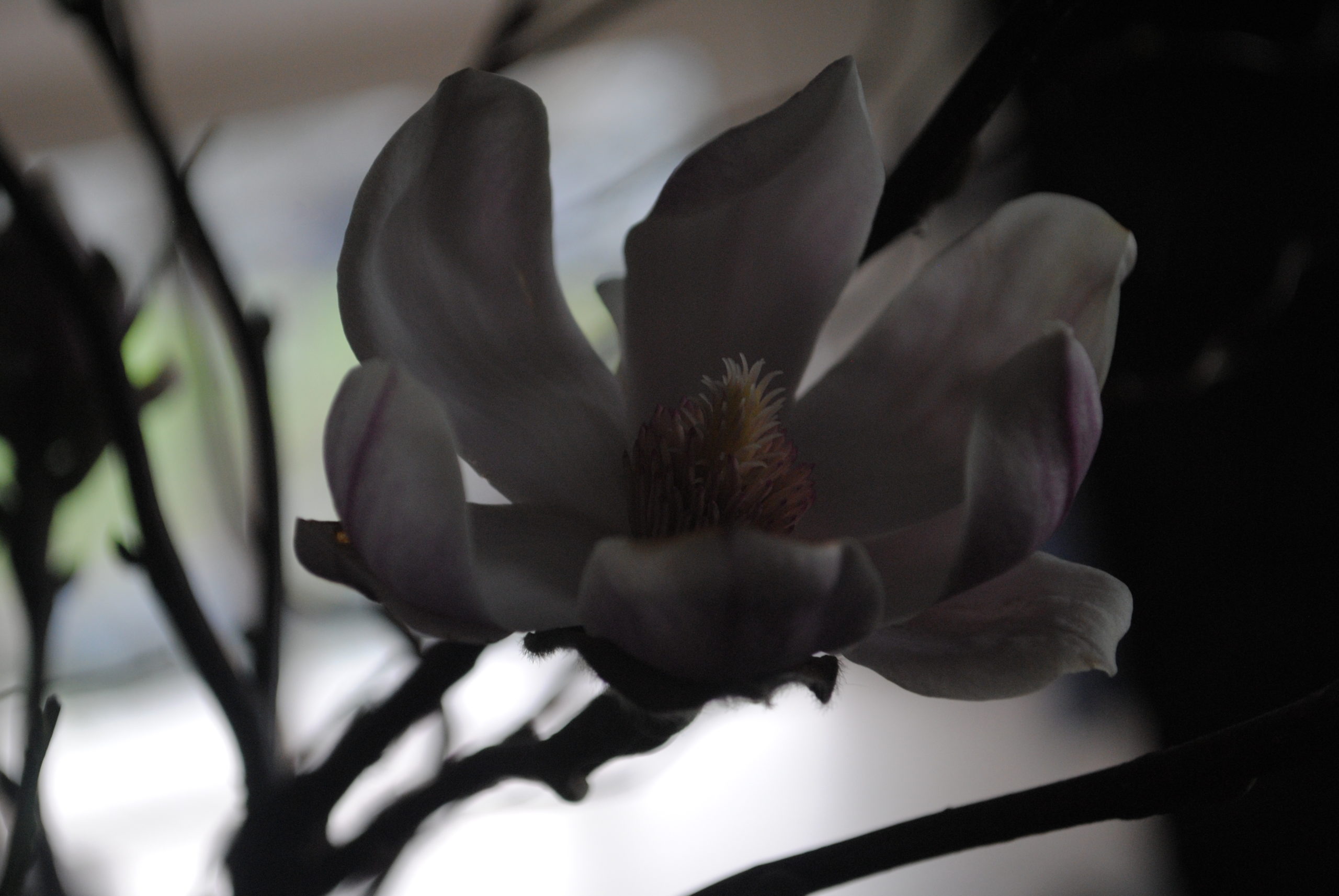 Der knorrige kleine Ast war Teil eines Blumenstraußes, den ich vor einiger Zeit bekam. Ich vermutete schon, dass er ein Magnolienzweig war - und wartete und schaute... doch nichts geschah.