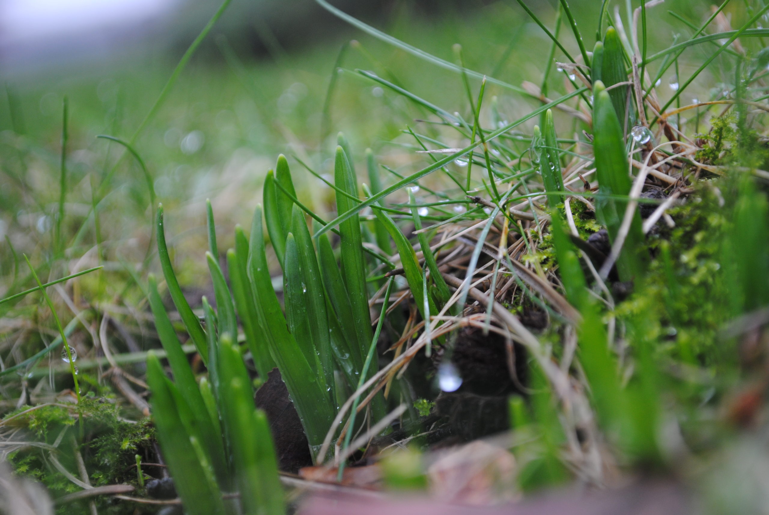 Der Weg ist matschig und triefend, das Gras glänzt hellgrün.